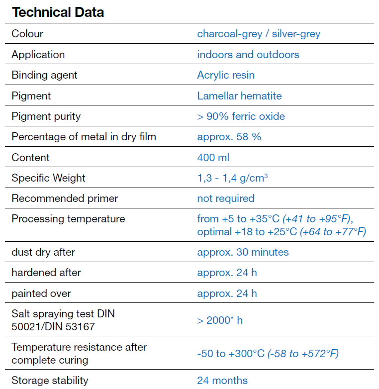 Rust Protection 2000 PLUS is a particularly corrosion and weather resistant surface coating on the basis of ferric oxide (hematite). The usage of highly-pure ferric oxide pigments in a flaky arrangement achieves permanent, weather-resistant and water-repellent surface protection.