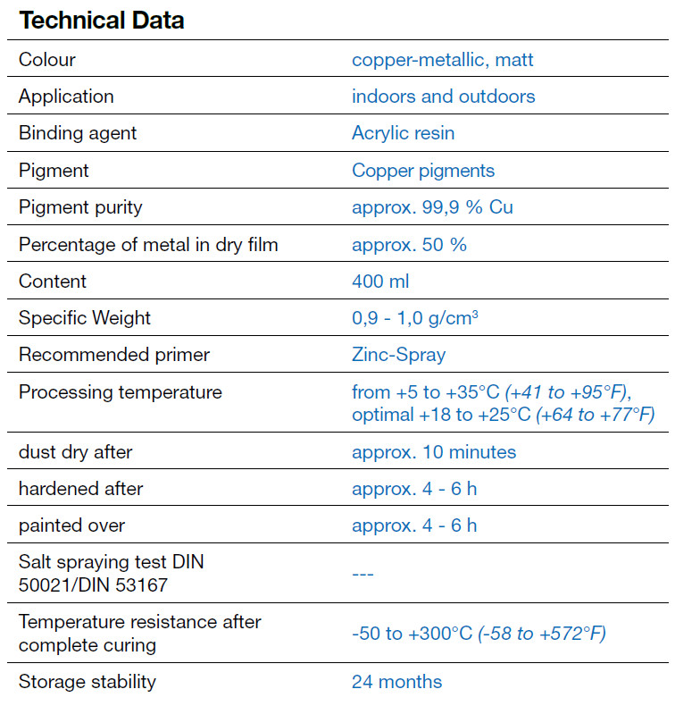 WEICON Copper Spray is a high-quality, weather-resistant metal spray with high adhesion power and a high copper content