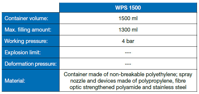WPS 1500 is a refillable pump dispenser in which many WEICON Technical Liquids can be used. The building-up pressure in the fluid container is achieved by pumping pure air with the pump rod. An integrated security valve opens automatically as soon as the allowed pressure (max. 4 bar) has been exceeded.