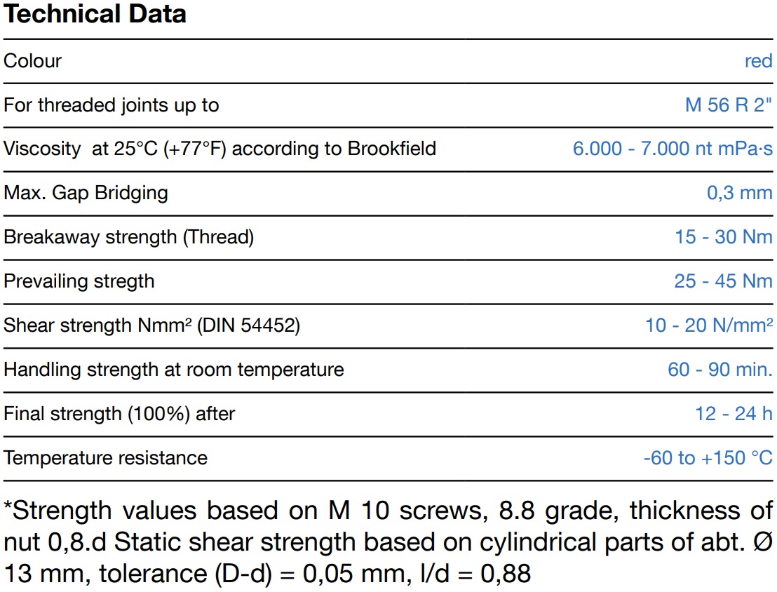 Weicon WEICONLOCK® 305-86 thread locking adhesive is ideal for sealing pipes and flanges. Very strong. Its characteristic features are increased viscosity, high strength and the fact that it is difficult to dismantle.