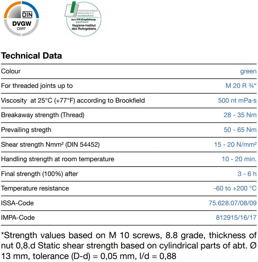 Weicon WEICONLOCK® AN 302-70 is perfect for securing screws and pins. Its characteristic features are medium viscosity, high strength and the fact that it is difficult to dismantle. The product is approved for drinking water and DVGW.