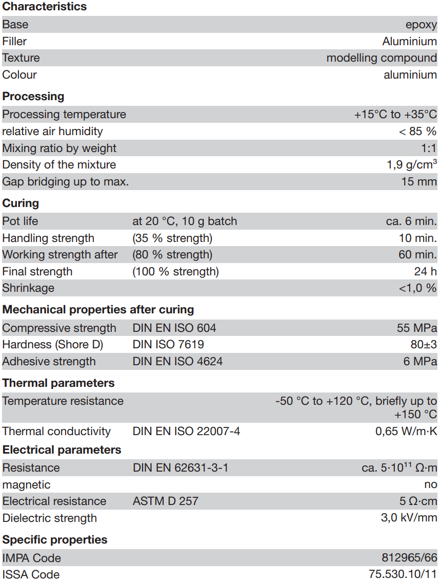 Weicon Repair Stick Aluminum is intended for quick and non-corrosive fillings as well as for joining aluminum parts. Eliminates cracks, holes and leaks in bodywork, gearboxes, window frames and profiles, as well as vessels and models. It can be used in machine construction, in the automotive sector, in the production of gears, windows, models as well as in many other applications.