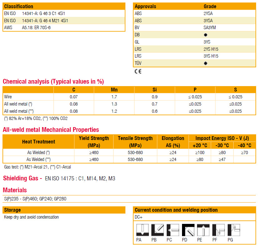EN ISO 14341-A: G 46 3 C1 4Si1