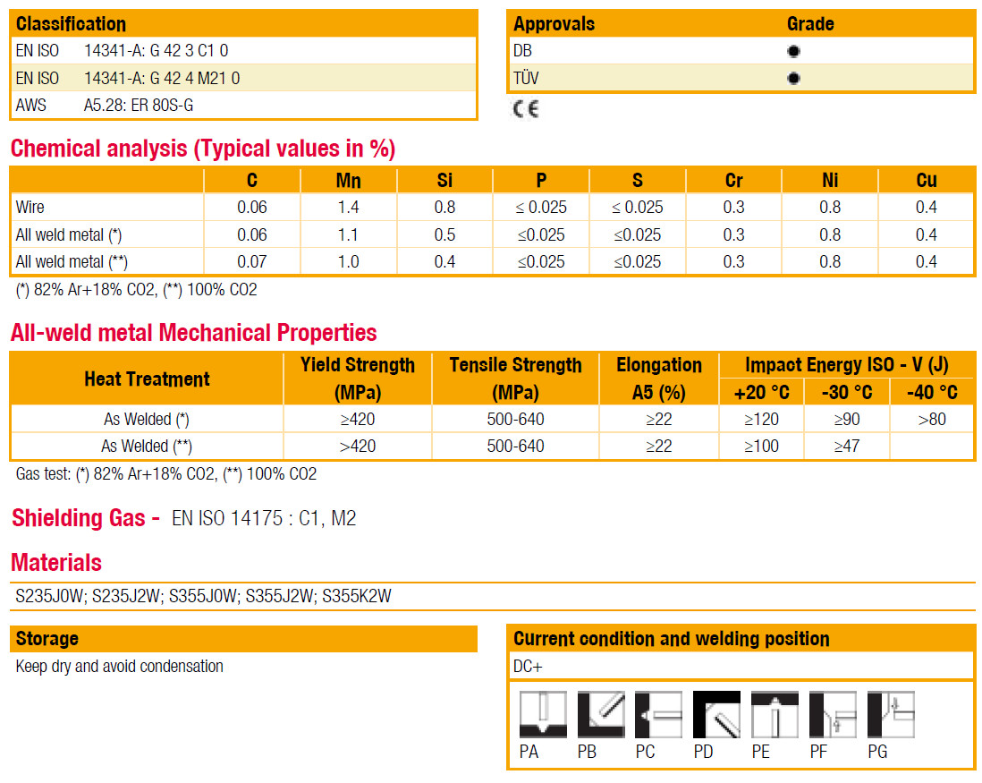 CARBOFIL NiCu is a copper coated ER80S-G type solid MAG welding wire supplied both random and precision layer wound, depositing a C-1Mn0.8Ni0.4Cu for the welding of weathering steels such as COR-TEN, Patinax, etc. Suitable for welding with CO2 or Ar+CO2 mixed shielding gases.