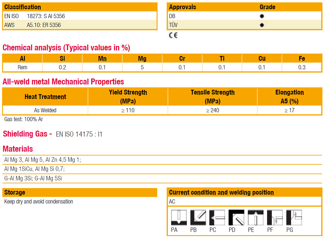 ALUROD AlMg5 is the most widely used Al welding wire, because of the weld metals high yield strength and high resistance to corrosion, including seawater.