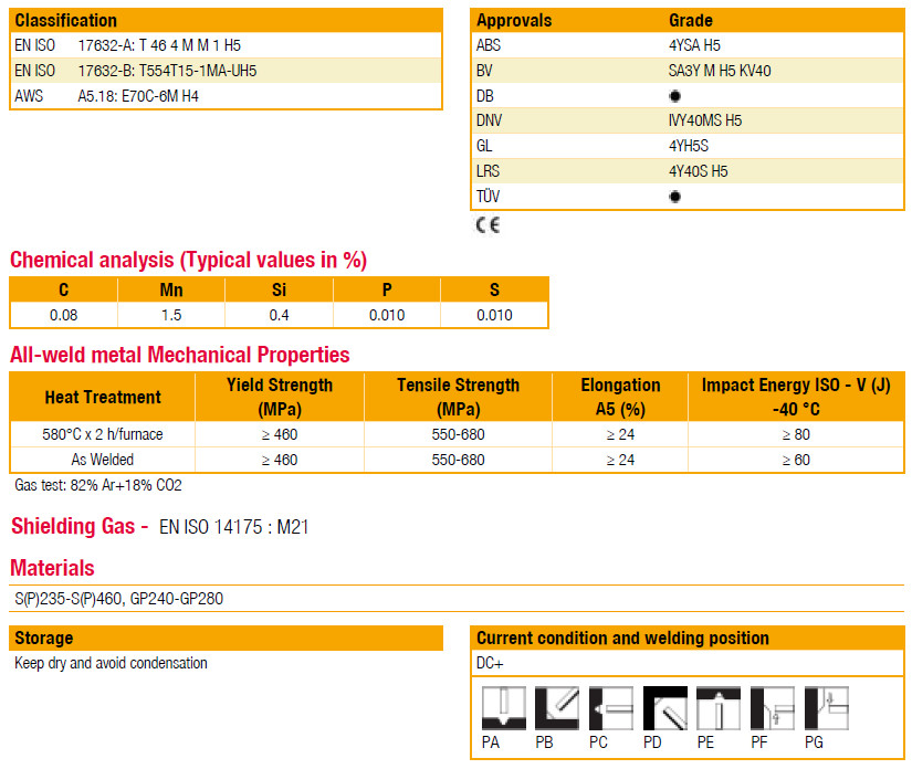 EN ISO 17632-A: T 46 4 M M 1 H5