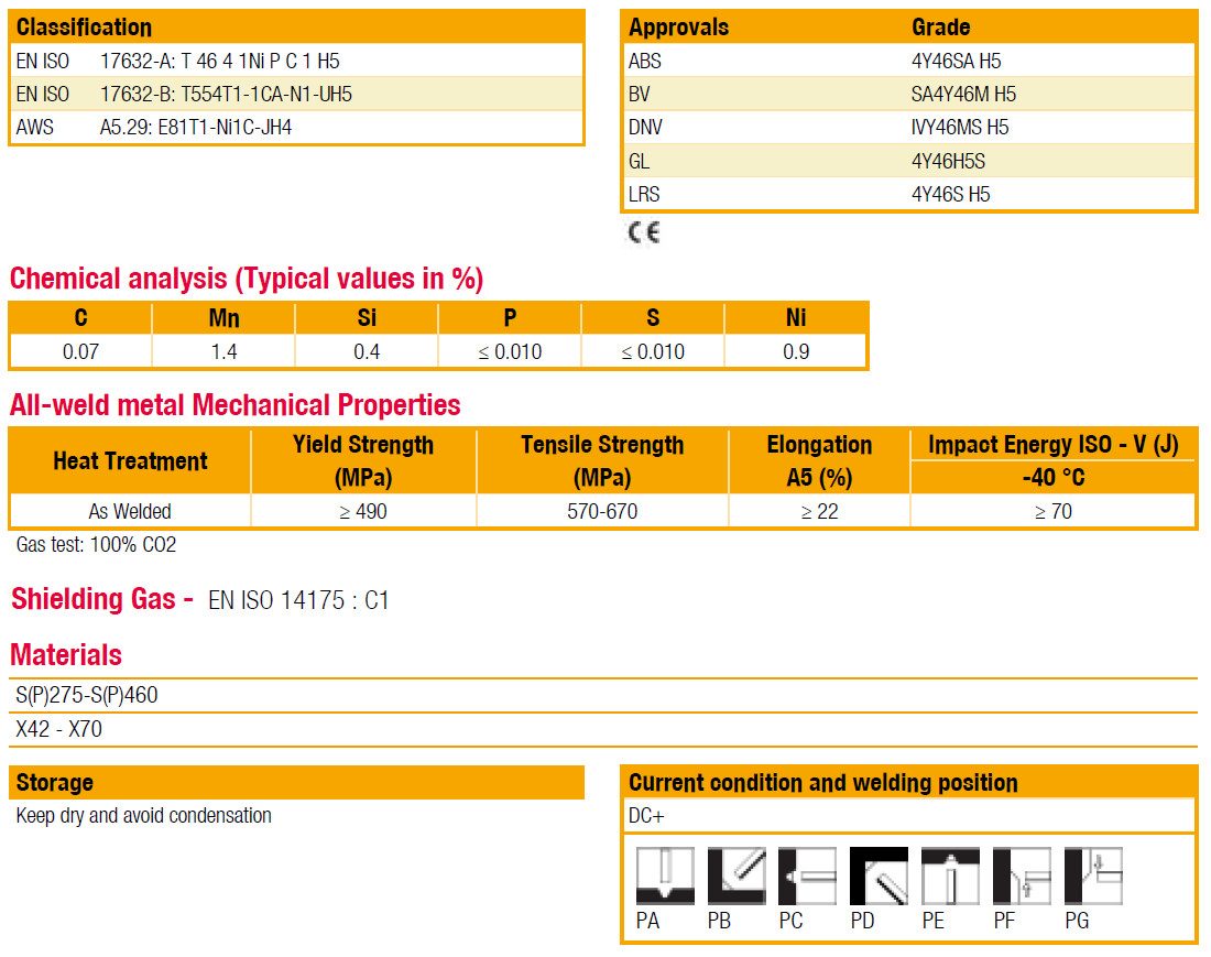 EN ISO 17632-A: T 46 4 1Ni P C 1 H5