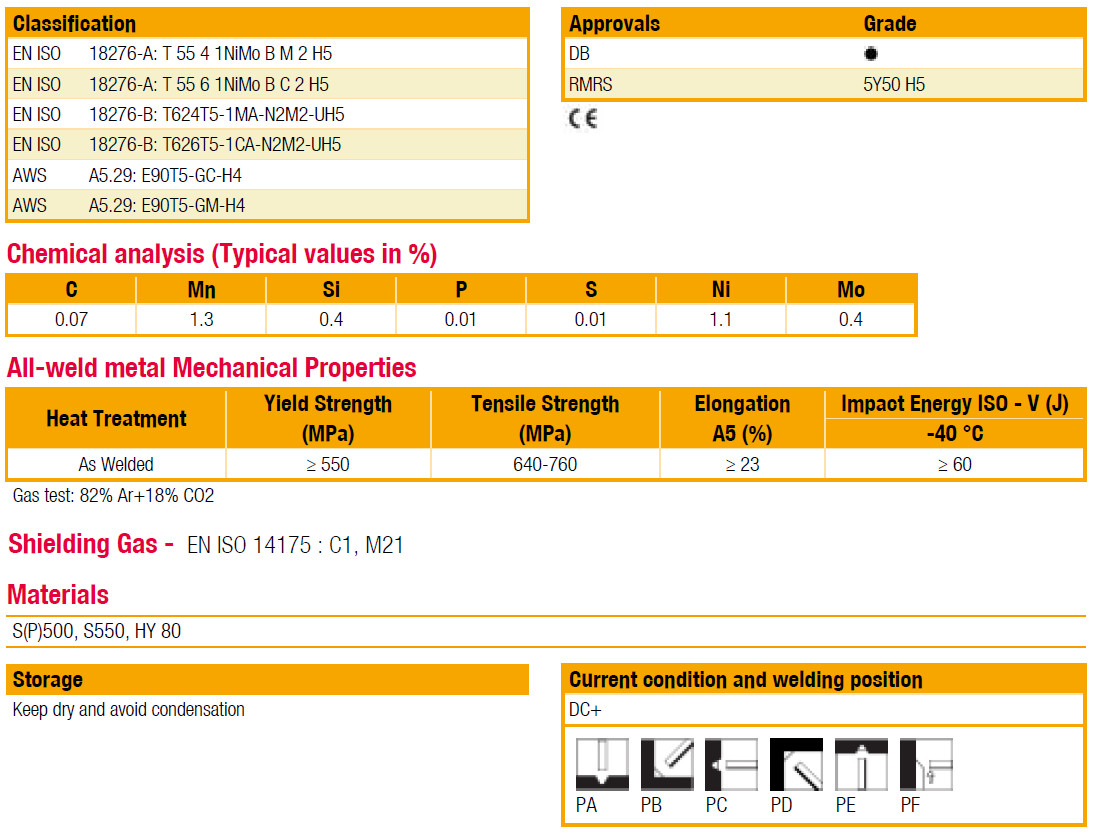 EN ISO 18276-A: T 55 4 1NiMo B M 2 H5
