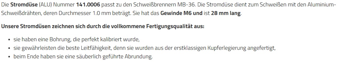 • Stromdüse MB36 M6x28x1.0mm ALU 141.0006