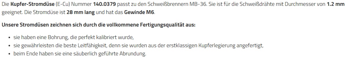 • Stromdüse MB36 M6x28x1.2mm 140.0379