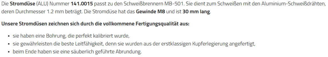 • Stromdüse MB501 M8x30x1.2mm ALU 141.0015