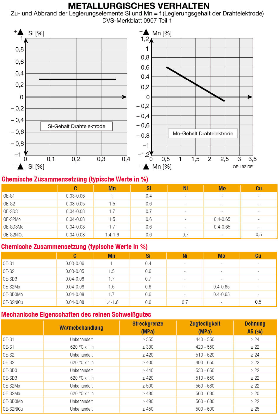 OP 192 ist ein agglomeriertes Schweißpulver der aluminat-basischen Typengruppe für das Schweißen von allgemeinen Baustählen, Kesselblechen, Rohrstählen sowie Feinkornbaustählen. Das Schweißpulver bewirkt einen mittleren Zubrand an Silizium und Mangan und wird deshalb vorzugsweise mit den Drahtelektroden OE-S 2 und OE-S 2Mo kombiniert. OP 192 ist geeignet zum Doppeldraht-, Tandem- und Mehrdrahtschweißen sowohl für Mehrlagen- als auch Einlagenschweißungen. Bei Lage/Gegenlage- oder einlagigen EinseitenschweiBungen ist aufgrund des höheren Zähigkeitsniveaus der Einsatz einer Drahtelektrode OE-S 2 Mo vorteilhaft.