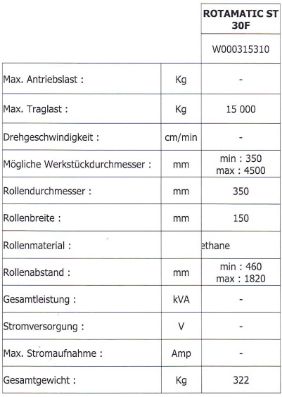 Der ROTAMATIC ST30W besitzt eine Antriebseinheit und ist zum Drehen von zylindrischen Werkstücken mit unterschiedlichen Durchmessern und Gewicht bestimmt, Jeder Rollenbock besteht aus einem flach gebauten Gestell und motorisierten oder nicht motorisieften Drehrollen mit einem über Schraubspindel einstellbarem Abstand. Bei der motorisierten Version ist der Rollenbock mit einem separaten Schaltkasten ausgestattet, Er verfügt über eine Fernbedienung für die zwei Drehrichtungen mit einer Geschwindigkeitsregelung über ein Potentiometer.