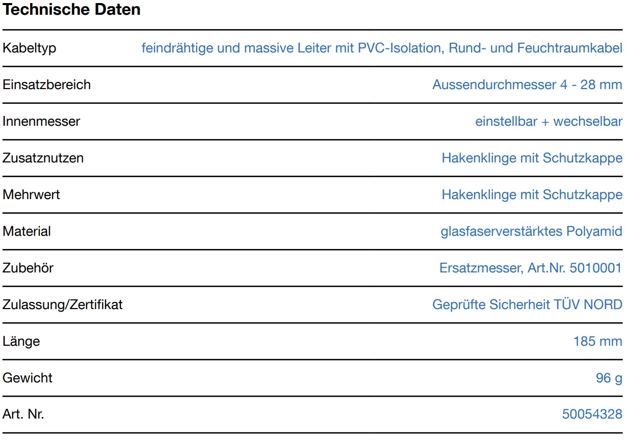 Der große Durchmesser des Griffs sorgt für optimalen taktilen Kontakt. Stufenlos einstellbarer und einfach zu bedienender Einstellknopf. Präzises, schnelles und sicheres Entfernen der Därme. Schneller Wechsel der Innenmesser dank Bajonettverschluss.