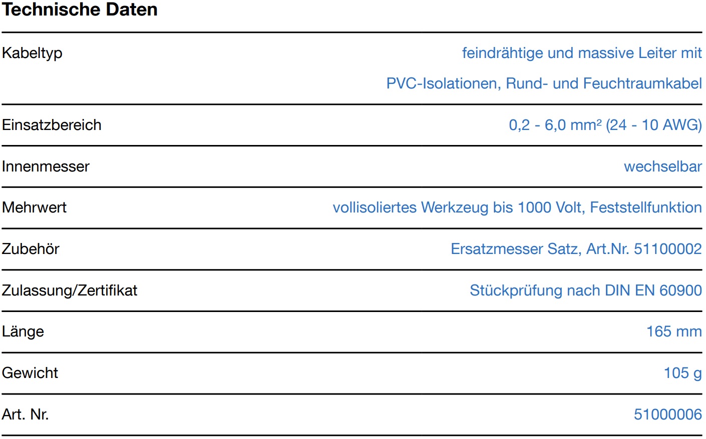 Automatische Abisolierzange. Präzises Arbeiten dank einstellbarer Pufferlänge (5 - 12 mm). Integrierter, leicht zugänglicher Seitenschneider bis 2 mm Ø. Arbeitsbereich: 0,2 - 6 mm².
