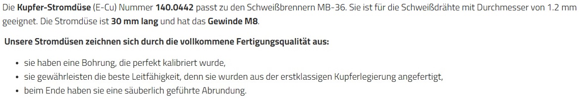 • Stromdüse MB36 M8x30x1.2mm 140.0442