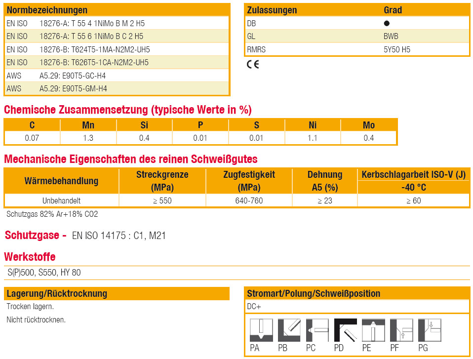 Anwendung: | Fülldrahtelektroden hochfeste Stähle |