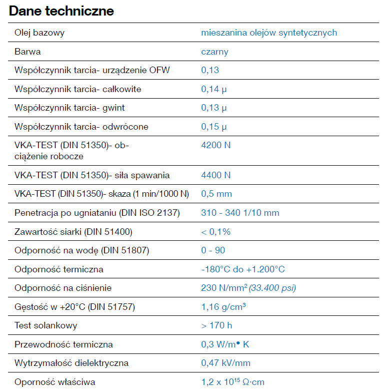 WEICON Anti-Seize stanowi znakomitą ochronę przed korozją, korozją cierną, zacieraniem i zużyciem ściernym, zjawiskiem „stick-slip”, utlenianiem oraz reakcjami elektrolitycznymi.