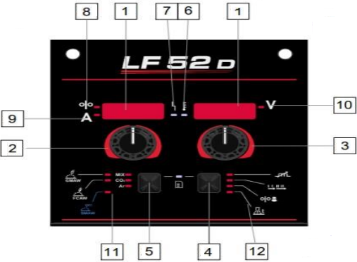 Panel obsługi, znajdujący się w podajniku drutu LF52D, charakteryzuje się wysoką intuicyjnością i łatwością obsługi, dzięki czemu nie wymaga długiego szkolenia. Gwarantuje on prostą nawigacją w menu za pomocą przycisków, umożliwiając bezpośredni dostęp do najczęściej stosowanych parametrów spawania, takich jak: tryb pracy uchwytu spawalniczego (2-takt/4-takt), prędkość podawania drutu (Run-in), dynamika łuku- Arc control (indukcyjność), czy czas upalania drutu, zapobiegający przyklejaniu drutu do jeziorka spawalniczego.
