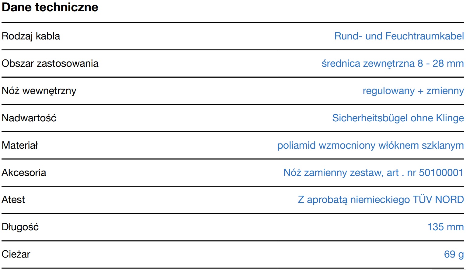 Płynnie regulowane i łatwe w obsłudze pokrętło nastawne. Precyzyjne, szybkie i bezpieczne ściąganie osłonek. Szybka wymiana wewnętrznych nożyków dzięki zamkowi bagnetowemu.