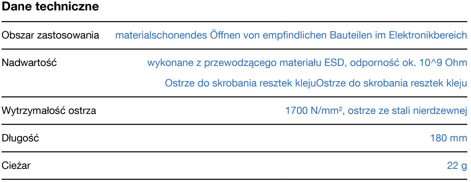 Idealny do delikatnego otwierania i demontażu obudów zatrzaskowych.