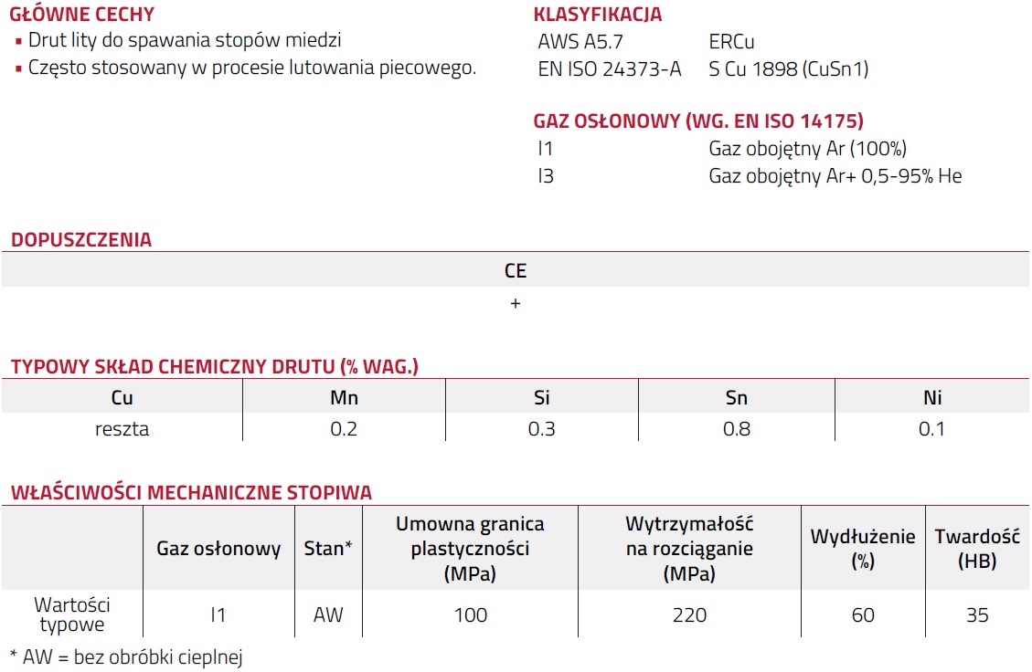 Drut spawalniczy Lincoln LNM CuSn to drut lity przeznaczony do spawania stopów miedzi. Idealnie sprawdza się w procesie lutowania piecowego. Spawanie drutem obywa się w osłonie gazów obojętnych Ar (100%) lub Ar+ 0,5-95% He. Oznaczenie drutu to ERCu / S Cu 1898 (CuSn1).