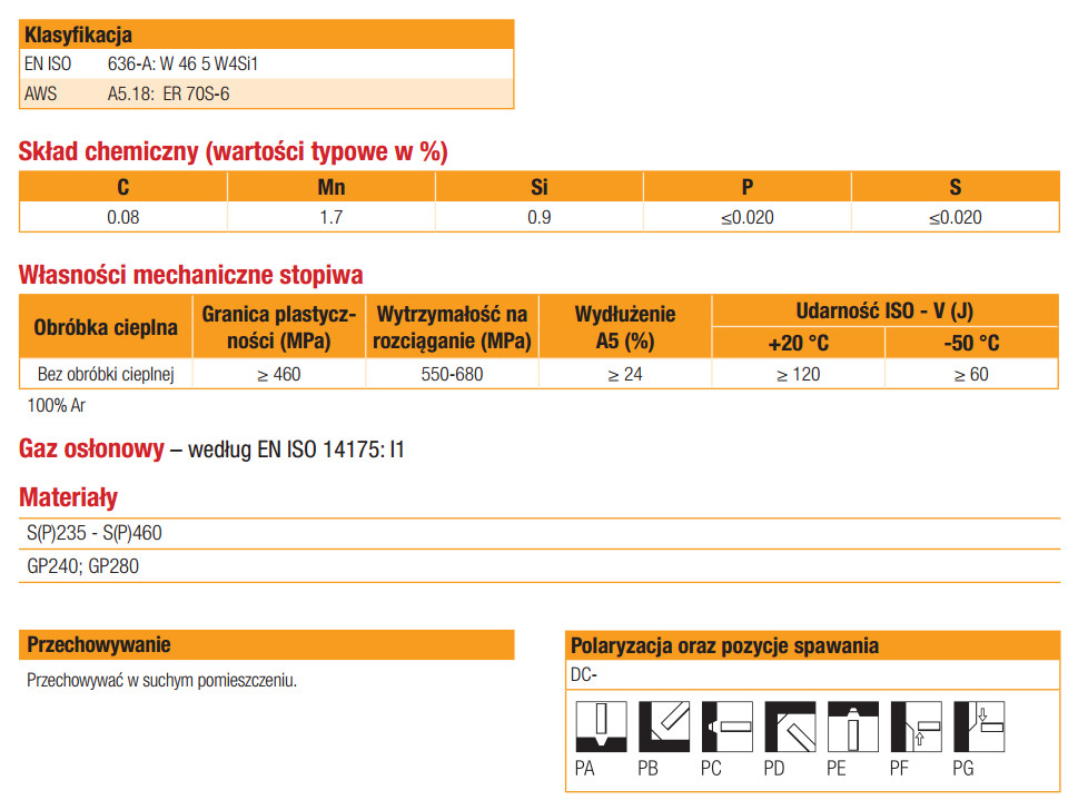 CARBOROD 1A Ø3.2mm są miedziowanymi prętami gatunku W4Si1 / ER70S-6, które świetnie sprawdzają się przy spawaniu metodą TIG stali niskostopowych węglowo-manganowych, stali konstrukcyjnych, stali niestopowych oraz stali przeznaczonych do konstrukcji urządzeń ciśnieniowych, których minimalna granica plastyczności wynosi 460 MPa. Pręty CARBOROD 1A polecane są również do spawania warstw graniowych. Zaleca się, aby jako gaz osłonowy stosowany był czysty argon Ar.