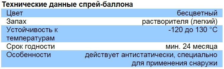 Спрей позволяет эффективно очищать большие поверхности, не оставляя следов, и оставляет водостойкую и долговечную защитную пленку. Средство также позволяет освежить внешний вид материалов и смывает жирные загрязнения и удаляет отпечатки пальцев, предотвращая их образование.
