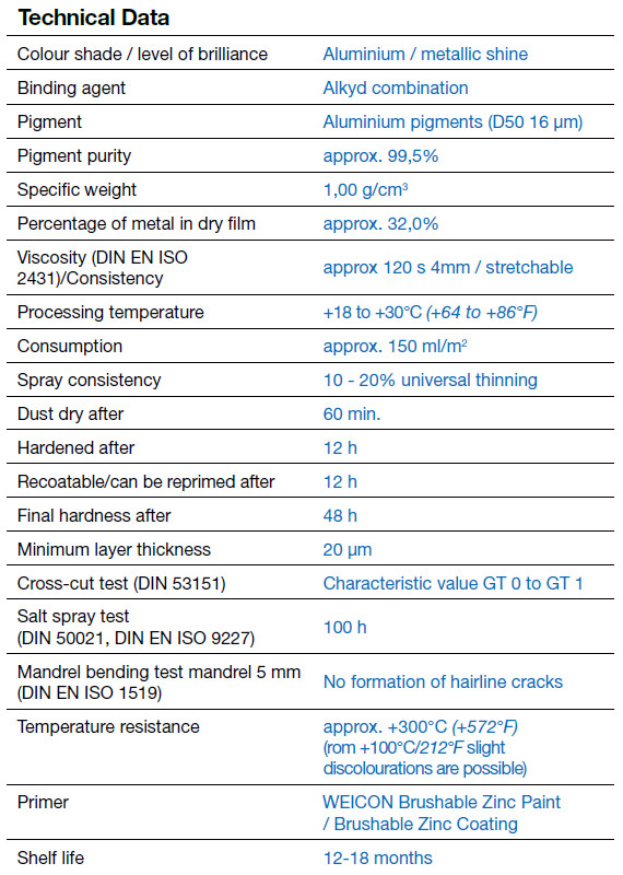 Алюминиевое покрытие WEICON Aluminium Paint является отличной антикоррозийной защитой и отлично подходит для улучшения внешнего вида металлических поверхностей. При контакте препарата с влагой алюминиевые пигменты образуют плотное оксидное покрытие, которое непроницаемо для воды и защищает от дальнейшего проникновения влаги.