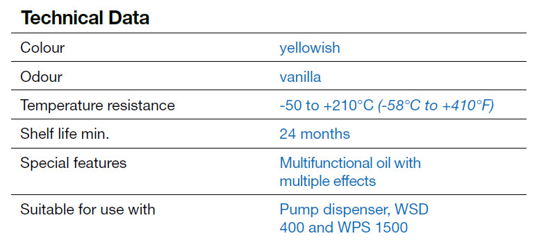 Многозадачное масло WEICON W 44 T® - это продукт, сочетающий в себе функцию защиты от коррозии, техническое обслуживание, вытеснение влаги, смазку и очистку. Возможность практически неограниченного использования препарата гарантируется благодаря его необычным свойствам ползучести и специальной формуле. WEICON W 44 T® широко используется в мастерских, по дому, в транспортном, автомобильном, сельскохозяйственном и электротехническом секторах.