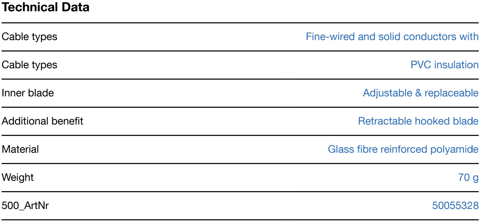 Диаметр рабочей зоны: 4 - 28 мм Ø. Плавно регулируемый и простой в использовании винт. Точное, быстрое и безопасное удаление оболочек.