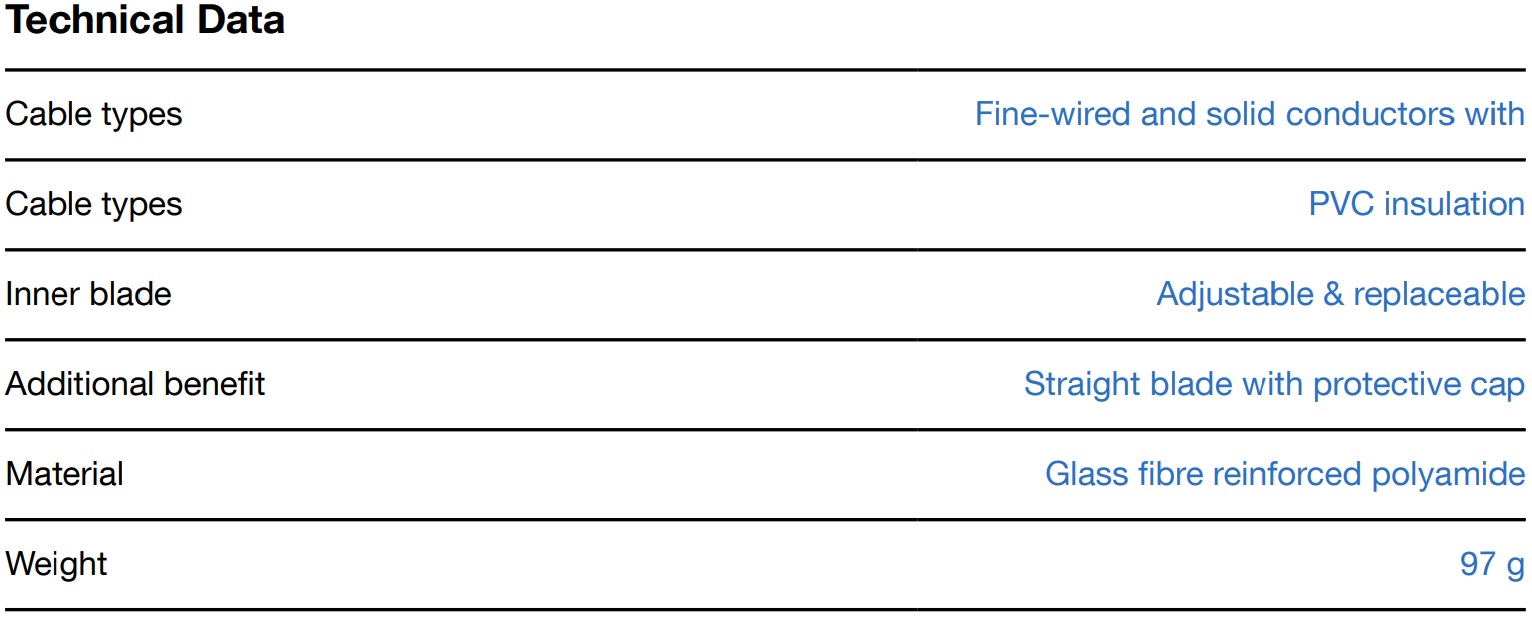 Большой диаметр рукоятки обеспечивает оптимальный тактильный контакт. Плавно регулируемый и простой в использовании винт. Точное, быстрое и безопасное удаление оболочек. Быстрая смена внутренних ножей благодаря байонетному замку.