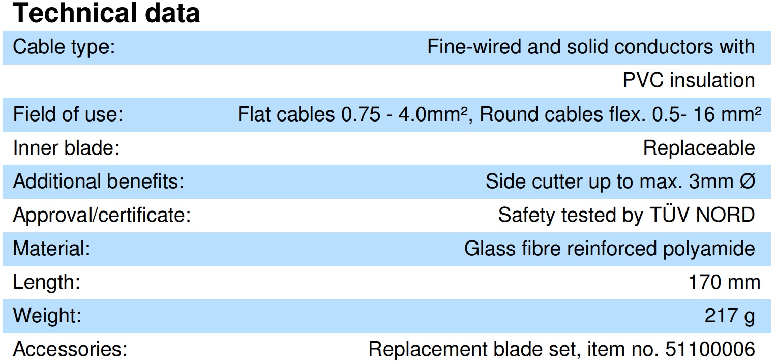 Рабочая зона: 0,75 - 4 мм². Точная работа благодаря оптическому размеру длины. Встроенный легкодоступный боковой резак диаметром до 3 мм.
