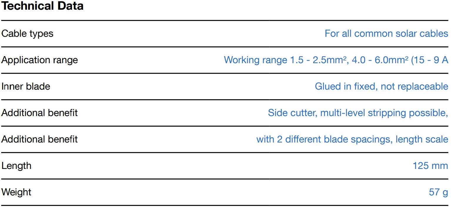 Рабочая зона: 1,5 - 6 мм². Автоматический инструмент для зачистки проводов. Точная работа благодаря оптическому размеру длины (до 26 мм). Встроенный легкодоступный боковой резак диаметром до 3 мм.