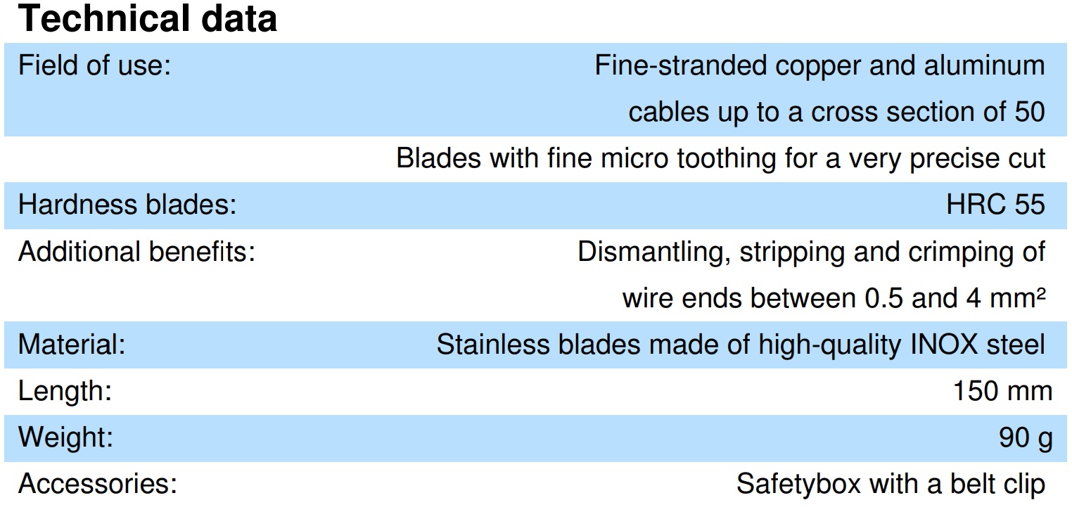 Двухкомпонентные рукоятки для повышения безопасности. Высокая эффективность резки. Лезвия из специальной нержавеющей стали.