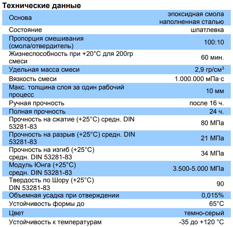Эпоксидный композит WEICON A сертифицирован DNV GL. Особенно рекомендуется для ремонта в морском секторе. Он наполнен стальными пигментами, магнитен и имеет пастообразную консистенцию. Его можно использовать на вертикальных поверхностях. Он также используется для ремонта коррозионных повреждений и точечной коррозии, а также для ремонта отверстий и зазоров. Он также хорошо работает, например, при воспроизведении элементов, сильно поврежденных коррозией и питтингом. Изделие является реальной альтернативой вспомогательной сварке, поскольку обработка эпоксидной смолой не вызывает термической деформации, как в случае сварки. Двухкомпонентный WEICON A также можно использовать при ремонте резервуаров, труб, а также трещин в корпусах двигателей, насосов и элементов машин.