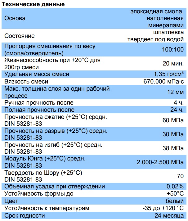 Продукт WEICON UW представляет собой двухкомпонентный эпоксидный состав с быстрым отверждением. Идеально подходит для ремонта и восстановления, например, труб, насосов, баков и емкостей. Благодаря специальной формуле WEICON UW сохраняет хорошую адгезию при склеивании под водой. Это означает, что его можно использовать в секторе морского и внутреннего судоходства, а также везде, где влага и сырость представляют собой серьезную проблему сцепления.
